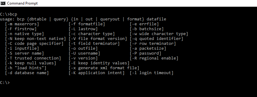 You can easily view the utility’s parameters. Open the command prompt and type “bcp.” This will display a list of parameters that you can apply. Some of the most important bcp arguments include: