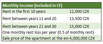 - We estimate that we will sell the property for 4,000,000 CZK in 30 years (a conservative approach).