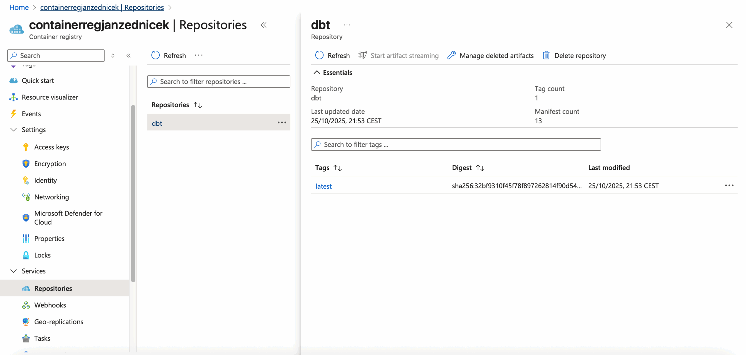 6) After pushing the image, you can verify it in your Azure Portal resource. The final step is to execute it via Azure Container App Jobs.