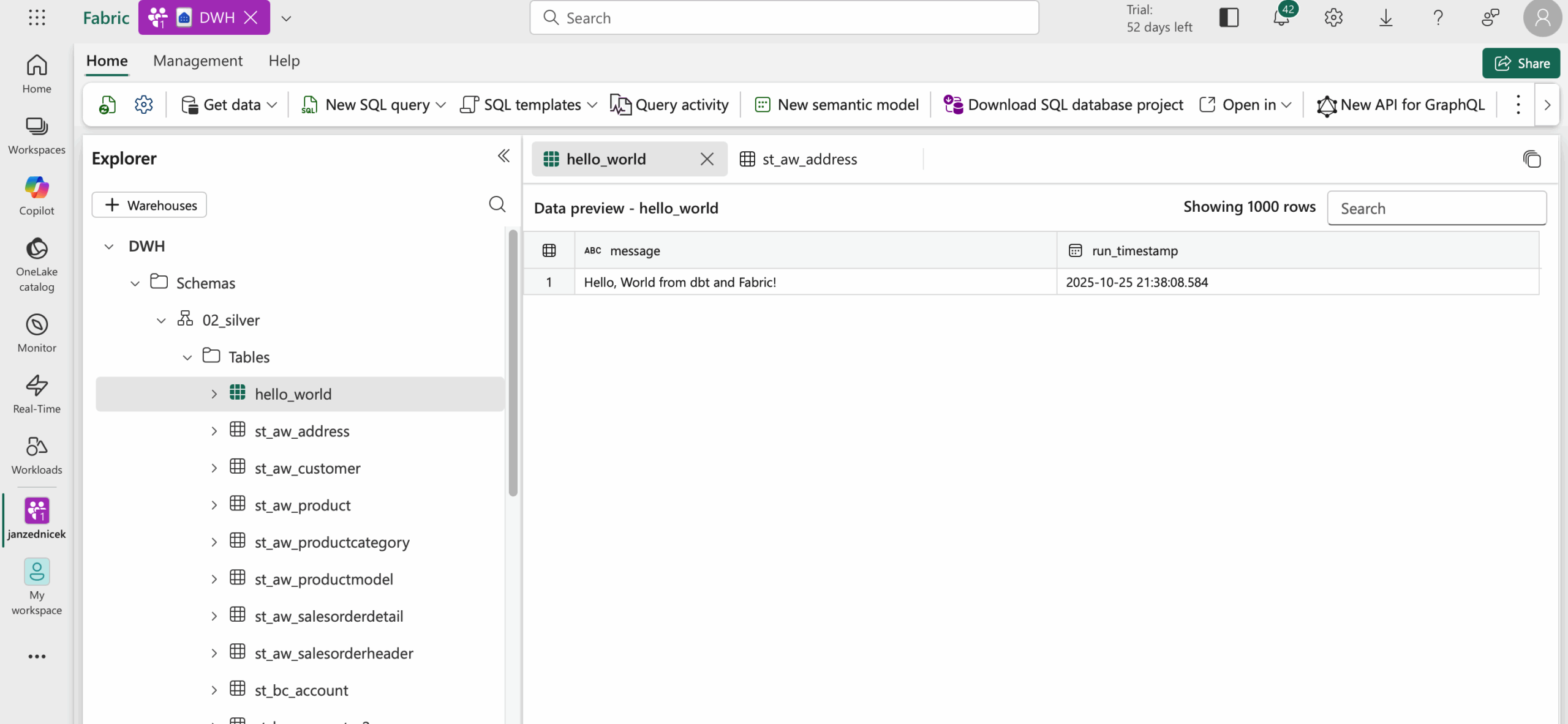 For the cloud-based Warehouse built on top of MS Fabric, we already have a prepared Lakehouse and DWH environment and, among other things, a configured dbt project. Now comes an important DataOps phase: we need to think about