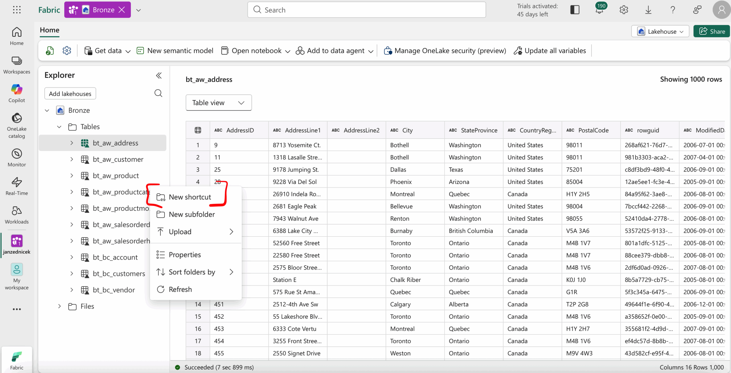 Once the shortcut is created, data from ADLS Gen2 can be processed. Typically, the following steps are performed: