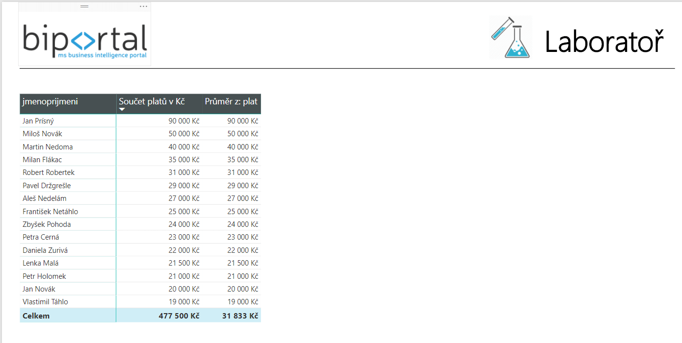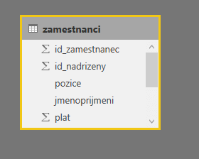 1) Vytvoříme si v Power BI desktop report a nahrajeme si jako zdroj tabulku zamestnanci